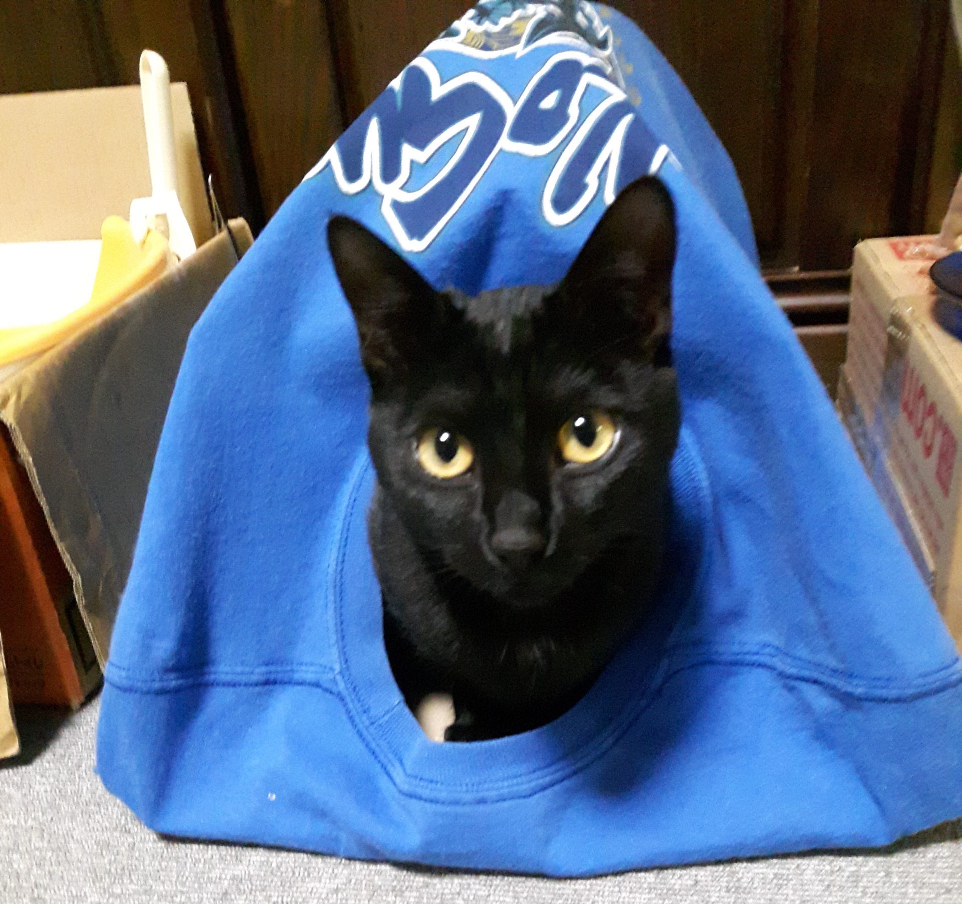 ダンボールの中に隠れて